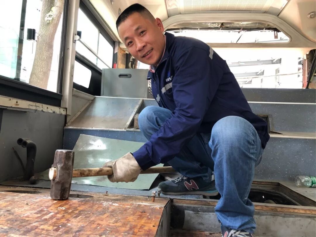 扬子修理厂车身车间铜工组职工张建国,车身修理美容师。通过电焊、大锤亲手还原车容车貌。