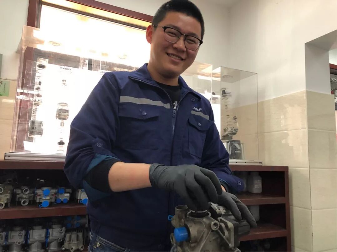 扬子修理厂总成大修车间电器组职工万其,工作时保持微笑,每天都元气满满。